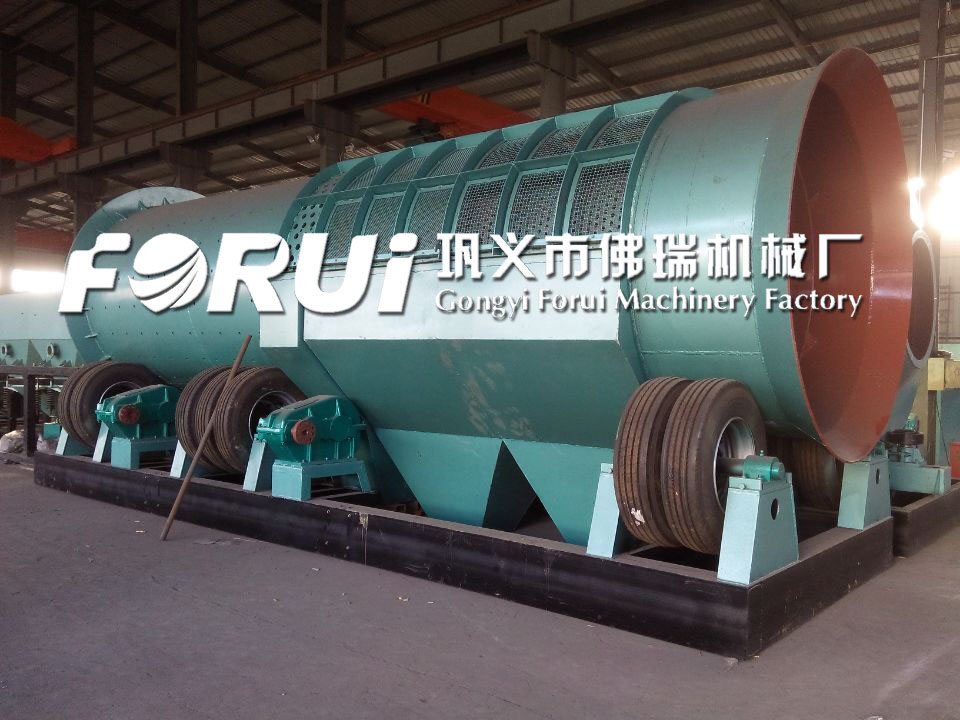 圓筒洗礦機廣泛用于各種難洗的大塊礦石,該洗礦機分圓筒型和圓筒加篩條型兩種。 后一種可把被洗物料分成+40mm和-40mm兩級產(chǎn)品,-40mm可再經(jīng)雙螺旋槽式洗礦機進一步擦洗可將物料分為+2mm和-2mm兩級產(chǎn)品,洗礦效率可達98%左右,這種組合對目前難洗礦石是最有效的方法。
