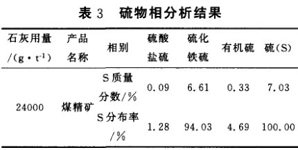 試樣的硫物相分析結(jié)果表明。此煤系硫鐵礦煤中硫的賦存狀態(tài)以黃鐵礦硫?yàn)橹鳎浯问巧倭坑袡C(jī)硫,硫酸鹽硫含量很少。