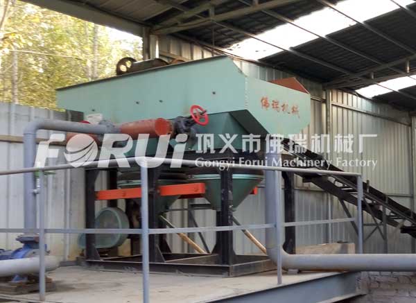 第一個(gè)硫鐵礦選礦廠位于重慶,該地的硫鐵礦為煤矸石中的硫鐵礦,含量在22-25%之間,以粗粒嵌布的狀態(tài)存在,煤矸石粒度有大有小,采用顎式破碎機(jī)-錘式破碎機(jī)的方式對(duì)煤矸石進(jìn)行破碎,破碎后的物料進(jìn)入硫鐵礦選礦設(shè)備(重選設(shè)備跳汰機(jī))進(jìn)行選礦提純,獲得精礦品位46%,回收率86%的選礦指標(biāo),采用梯形跳汰機(jī)平均處理能力達(dá)到30噸/時(shí)。下圖為重慶硫鐵礦選礦設(shè)備工作現(xiàn)場: