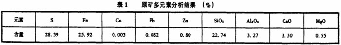 試樣采自礦山采場.并碎至-4mm。原礦的主要元素化學分析結(jié)果見表1。