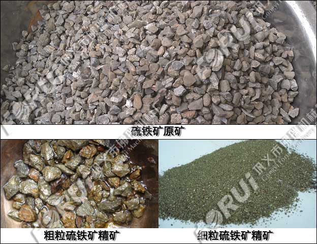常用的硫鐵礦選礦方法是重選法和浮選法,重選法是根據(jù)硫鐵礦和脈石的比重差進行的選礦,浮選法是利用化學(xué)藥劑浮游選礦。因此硫鐵礦的選礦設(shè)備也就包含重選設(shè)備和浮選設(shè)備。下圖為硫鐵礦選礦效果展示: