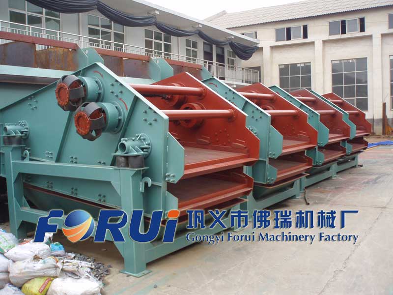 直線振動(dòng)篩采用雙電機(jī)驅(qū)動(dòng),當(dāng)兩臺(tái)電機(jī)做同步、反向旋轉(zhuǎn)時(shí),其偏心塊所產(chǎn)生的激振力在平行于電機(jī)軸線的方向相互抵消,在垂直于電機(jī)軸的方向疊為一合力,因此篩機(jī)的運(yùn)動(dòng)軌跡為一直線。其兩電機(jī)軸相對篩面有一傾角,在激振力和物料自重力的合力作用下,物料在篩面上被拋起跳躍式向前作直線運(yùn)動(dòng),從達(dá)到對物料進(jìn)行篩選和分級的目的?捎糜诹魉中實(shí)現(xiàn)自動(dòng)化作業(yè)。具有能耗低、效率高、結(jié)構(gòu)簡單、易維修、全封閉結(jié)構(gòu)無粉塵溢散的特點(diǎn)。最高篩分目數(shù)400目,可篩分出7種不同粒度的物料。
